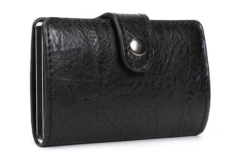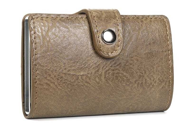 Baarn is een stijlvolle pasjeshouder en bergt maximaal 8 pasjes op. De kaarten zitten hier veilig in opgeborgen.. Met een handig knopje onderaan, schuift u met een vingerbeweging de pasjes er mooi trapsgewijs uit.