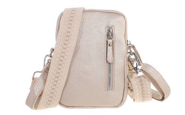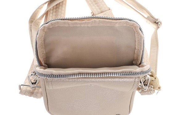 De voorzijde is voorzien van een extra vak met drukknopsluiting – handig voor spullen waar je snel bij moet. Binnenin vind je een hoofdvak met ritssluiting en genoeg ruimte voor je telefoon, sleutels, pasjes of andere essentials. De brede geweven schouderband geeft dit tasje nét dat beetje extra stijl, en is uiteraard verstelbaar voor optimaal draagcomfort.
